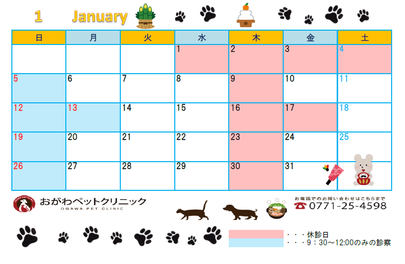皆様、おはようございます。 1月の休診日のお知らせです。 ※最終受付時間は診察終了の15分前までです。