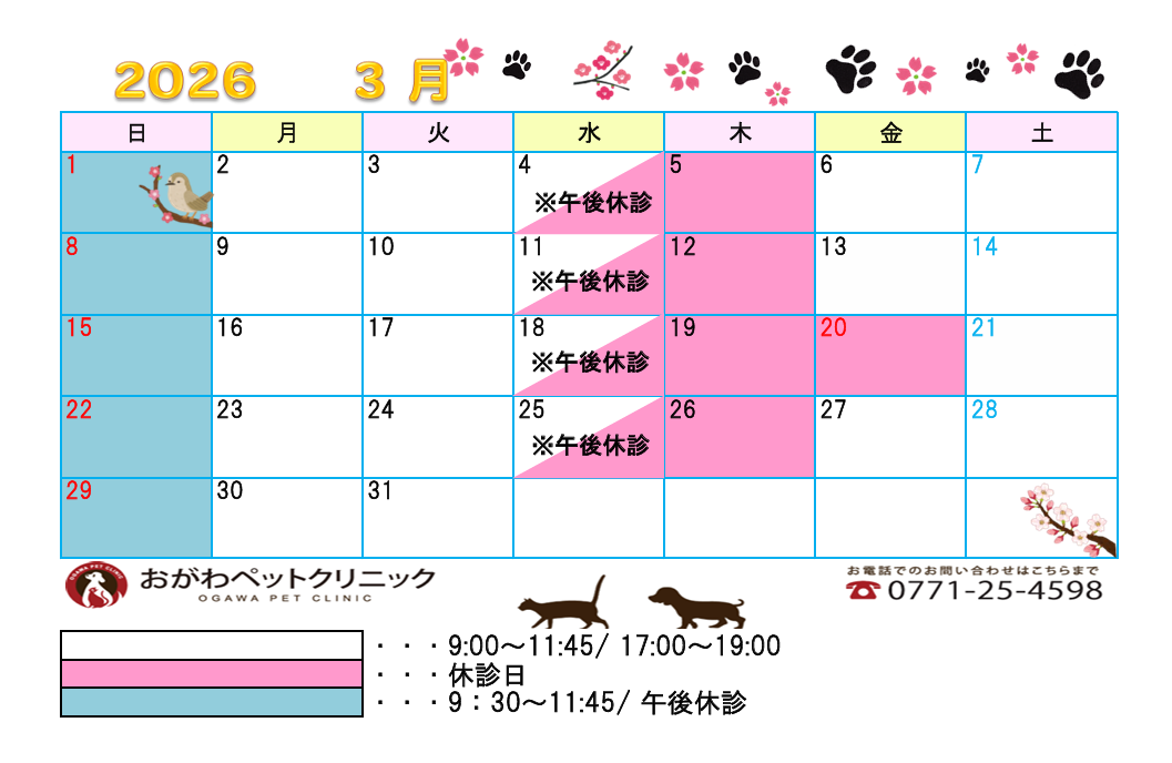 休診日カレンダー