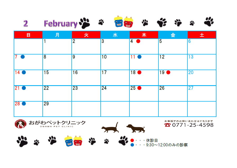 ~2月休診日のお知らせ~