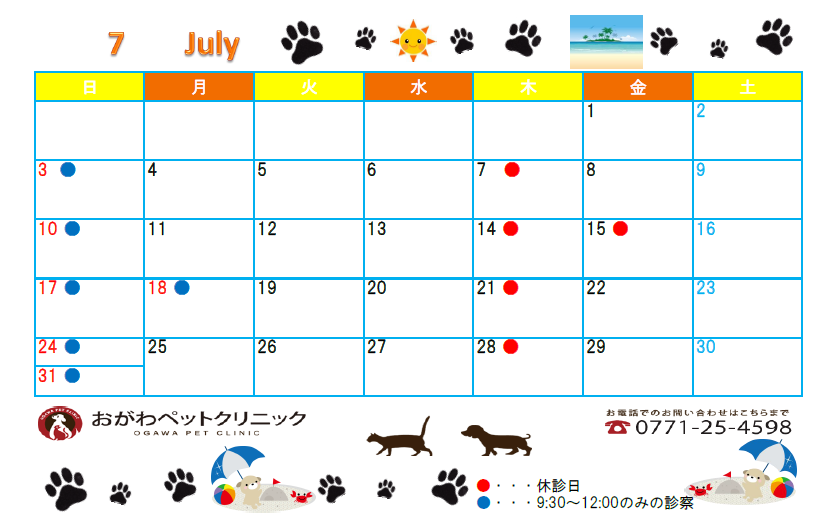 7月休診日は以下の通りです。