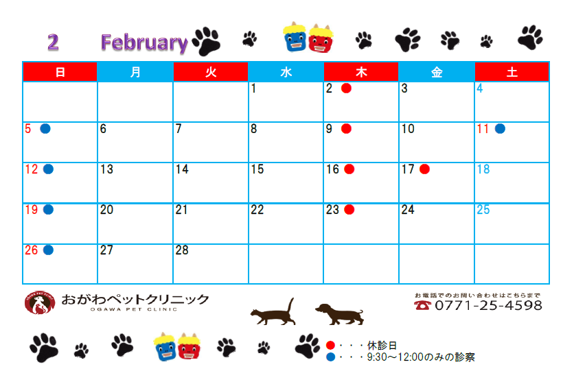 2月の休診日は以下の通りです