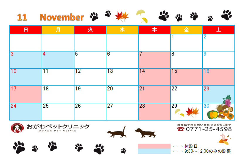 11月休診日のお知らせです。